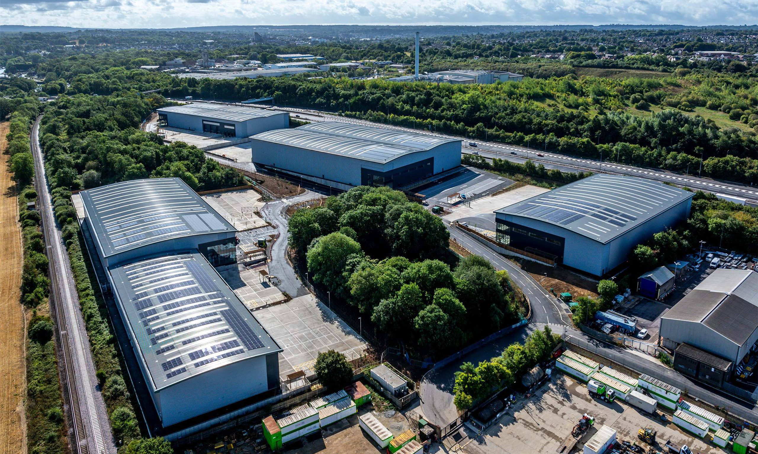 Click Aylesford involved delivering a 300,000 sq ft industrial and office development across six units on a former brownfield site in Kent. The project needed to achieve best-in-class sustainability—targeting EPC A and BREEAM 'Excellent'—while integrating wellbeing amenities, such as woodland walks and outdoor staff areas. Throughout, the lender required independent monitoring of cost, quality, and programme risk during construction.